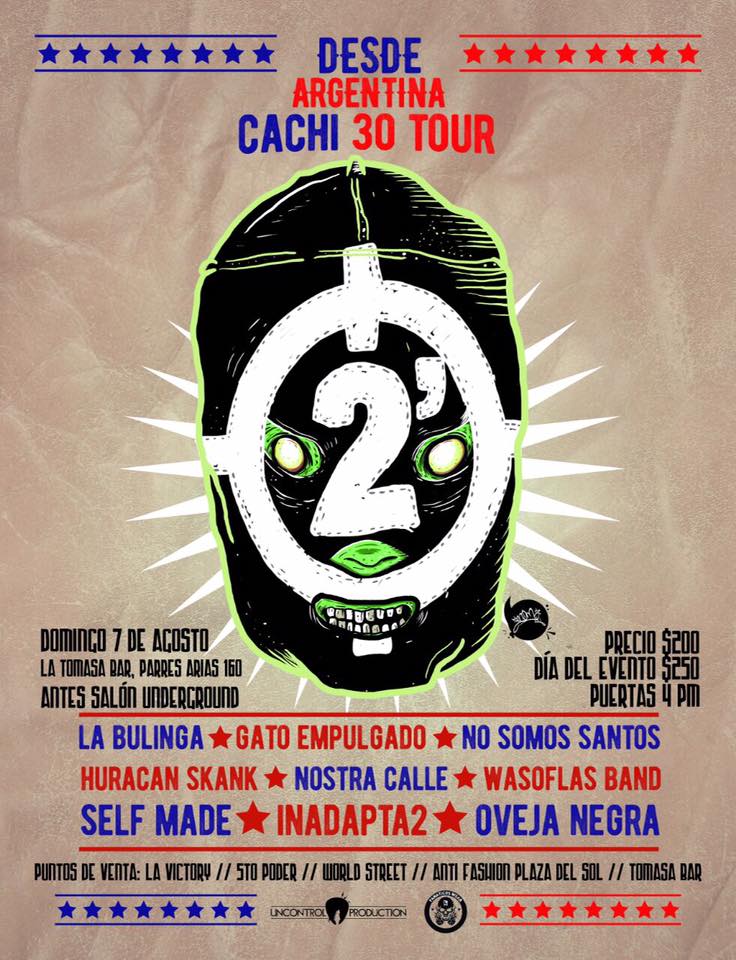 Celebrando su gira de 30 años de trayectoria regresa la banda más representativa del genero punk rock de Latinoamérica, vienen con actitud de armarla con demasiado punk rock, alcohol y descontrol, acompañadas de bandas reconocidas de Guadalajara OVEJA NEGRA con su más reciente material «LOS DE HOY» e INADAPTA2 con sus rolas más clásicas como txus, blanco y negro, contra ley entre otros.