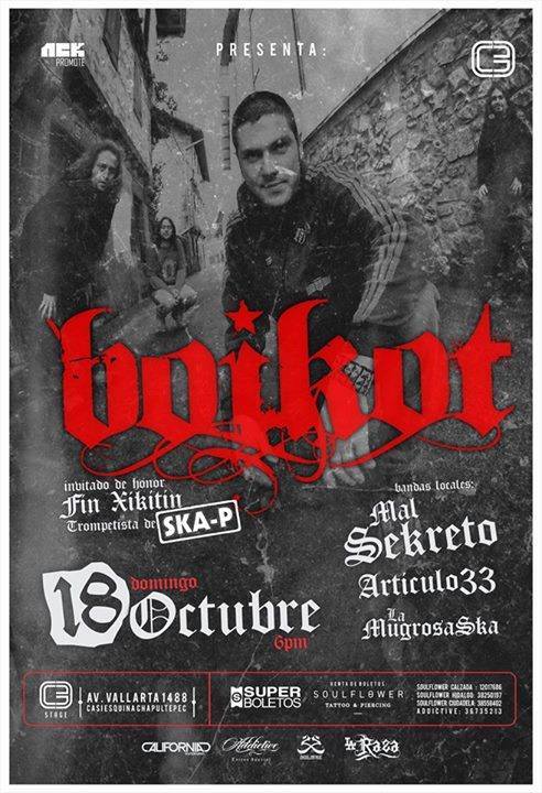Este 18 de Octubre se presentara la banda Boikot, acompañado del trompetista Txikitin de la banda española SKA-P, teniendo como escenario el C3 stage , teniendo de invitadas a las bandas locales Mal sekreto, Articulo 33 y La Mugrosa Ska