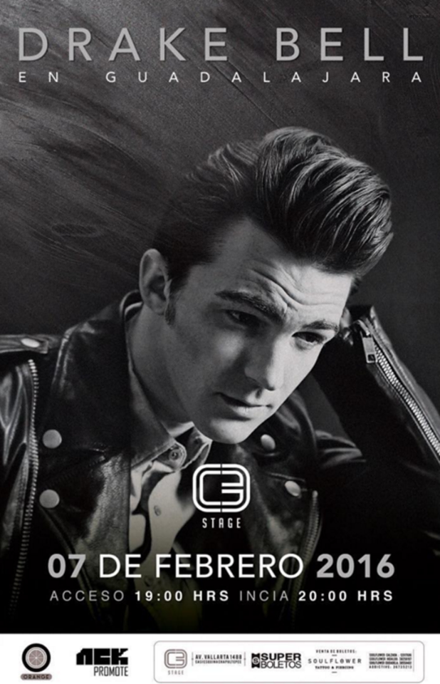 Jared Drake Bell de Santa Ana California mejor conocido como Drake Bell cantautor, actor y músico llega a la ciudad de Guadalajara.