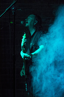 El publico iba inundando el foro al termino de ÄNIMA, la noche caía; ya que horas antes había llovido, era temprano (22:00 hrs.) y la siguiente banda subía al escenario. Mekrokiev; originarios del D.F. de un estado que vi nacer el Dark Rock en 1991 y que 15 años después los vio nacer. Con un sonido mas Gothic Rock en sus letras, que nos hablan de personajes que se escabullen entre la oscuridad para cometer las peores perversiones. Con una guitarra, un bajo, una pista de fondo y la voz de Pavel en el micrófono provocaron que mas de uno en el foro comenzara a cantar a la par de ellos y a mover la cabeza. Agradecieron la cordial invitación que Aves les ofreció y de igual forma los felicitaron por seguir volando.