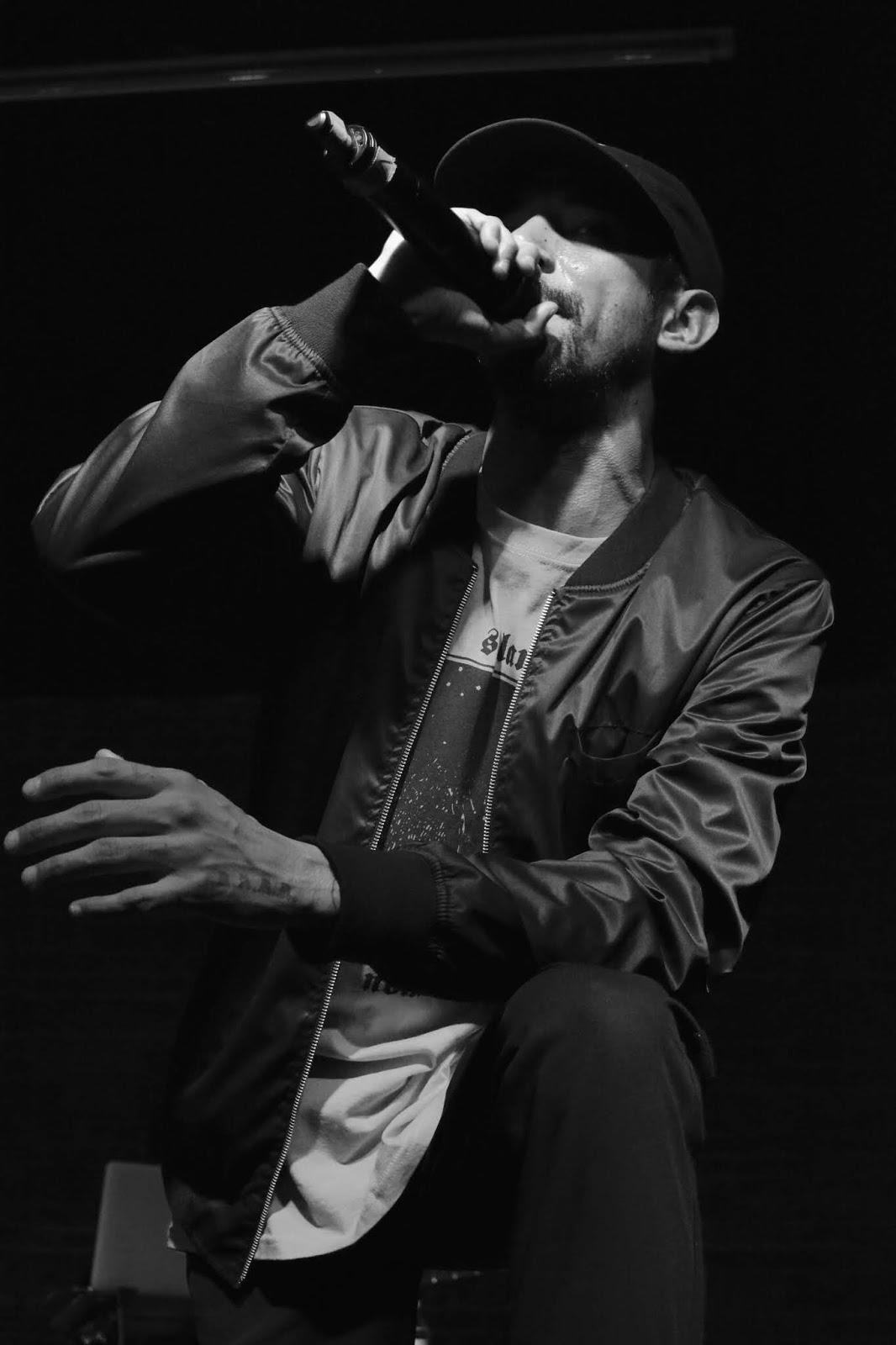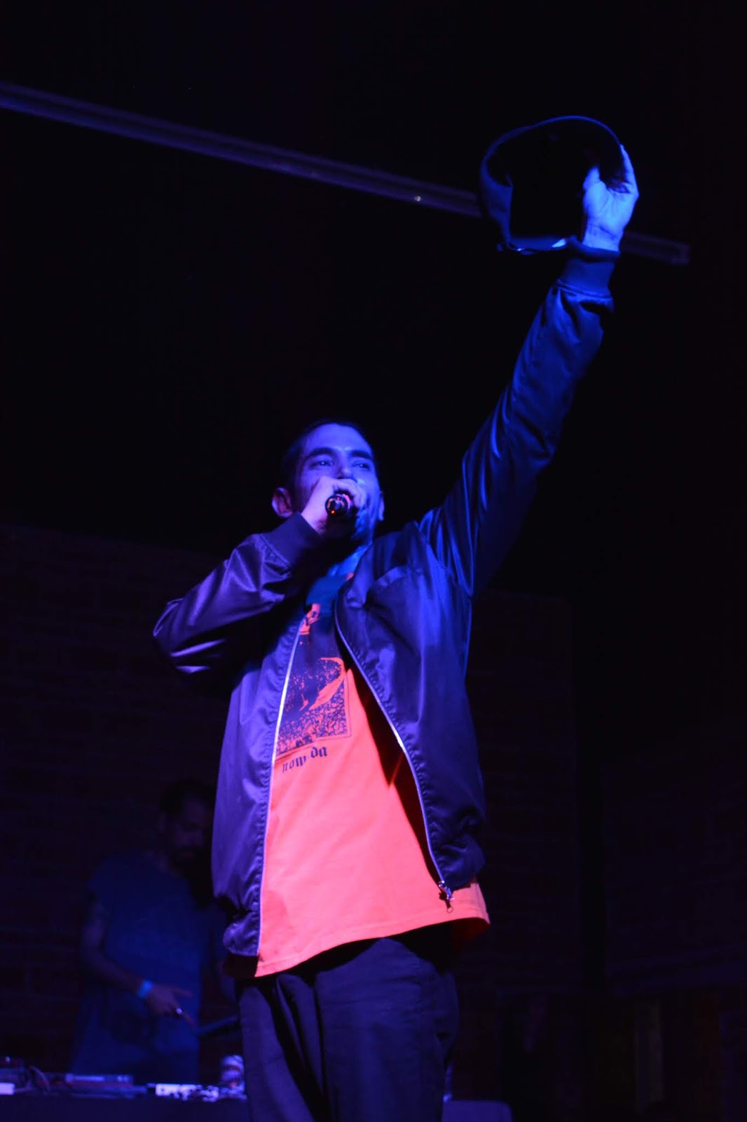Apenas comenzaba el show en el Anexo Independencia y ya hacia calor dentro del mismo, el calor humano, todos apilados lo mas cercano al escenario, celulares al aire y gritos efusivos daban inicio al espectáculo que no solo va de canciones profundas con temáticas de amor, de las vivencias del día a día del mc de la Ciudad de México, la cual pareciera que es un campo minado, un campo de guerra en la sobrevivencia de la misma.
