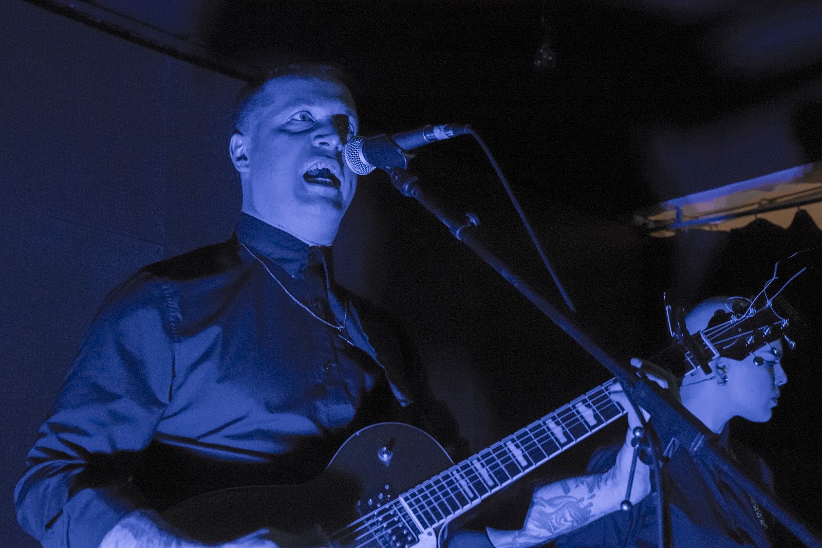 Y así fue. El público esperaba ansioso, mientras murmuraban y bebían en espera de T.J. Cowgill, mejor conocido como King Dude. De inmediato, casi a la media noche y caminado entre el público 3 cuerpos en una oscuridad inmersa en su vestimenta y porte subieron al escenario, un aplauso y los gritos de euforia de varios asistentes dieron pie a la noche más oscura acompañada del primer tema en tocar King Dude; ya sobre el escenario, “Holy Christos” seguido de temas ya conocidos como: “Death Won’t Take Me” y por supuesto “Our Love Will Carry On”.