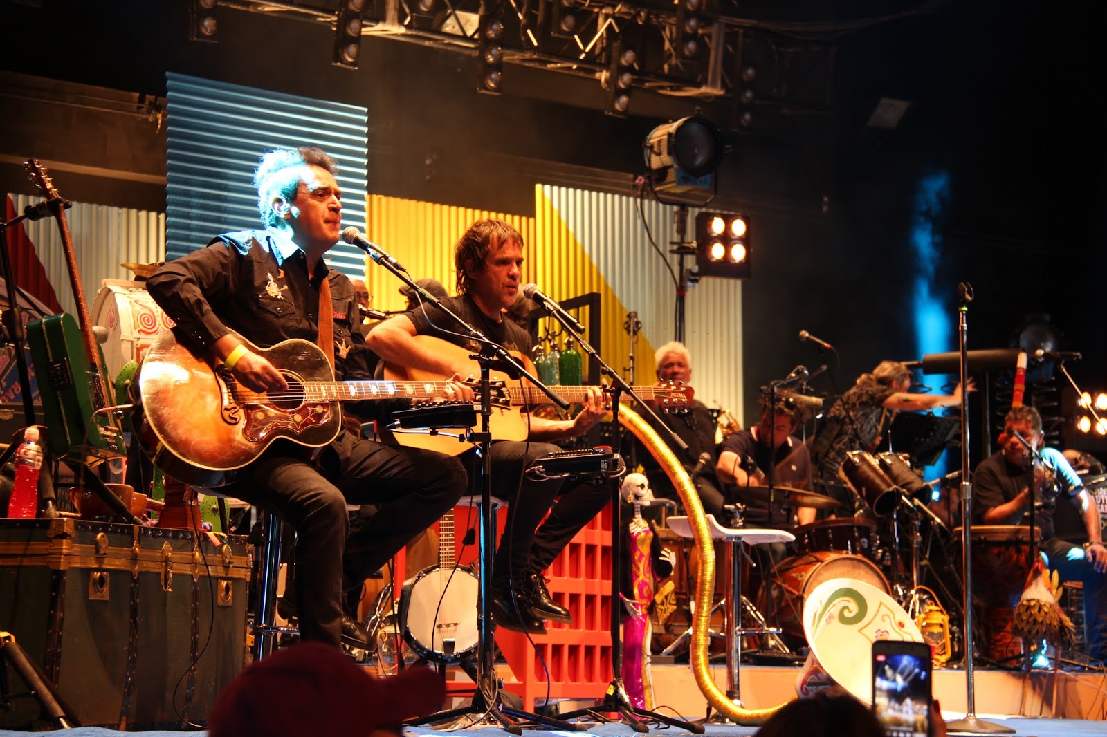 De repente nos dicen que seguramente la canción a continuación la conoceríamos. Un pequeño regalo curioso para su audiencia mexicana, el cover de los Tigres del Norte, Golpes en el corazón. La cual evidentemente conocíamos y fue bien recibida en el estilo de esta banda que ya nos había conquistado a todos. Y el siguiente punto, que definitivamente marcaba el inicio del fin, La Guitarra, un himno juvenil que parece representar a muchos de nosotros y nuestros ideales del pasado.