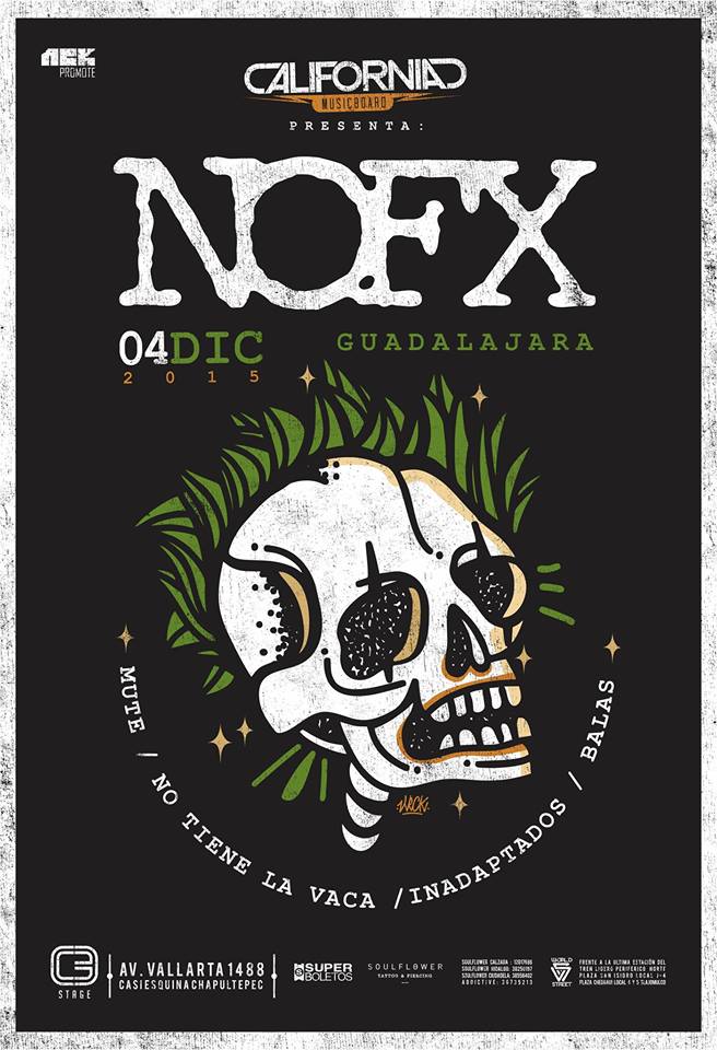 NOFX Eventos próximosNOFX NOFX 4 de Diciembre en Guadalajara C3 Stage Compartiendo escenario con Balas, Inadaptados, No tiene la Vaca y Mute Email Facebook Twitter Linkedin Tumblr Reddit VK Pinterest Pocket About The Author Latest Posts Revista Kaninche Motorama octubre 19, 2025 Malcriada agosto 20, 2025 The Devil Wear Prada julio 5, 2025 Evaristo junio 1, 2025 Annapura abril 30, 2025 Ratos de Porāo abril 30, 2025 VIEW ALL POSTS BY Revista Kaninche You May Also Like Rude Boys Foro Independencia octubre 13, 2016 The Selecter septiembre 2, 2019 10 años Golden Ganga representa. diciembre 19, 2016 Alcest junio 12, 2018 El Muerto de Tijuana Regresa a Guadalajara el Su “Santidad”, el “Ángel Caído» marzo 9, 2016 horarios octubre 12, 2015 Los Viejos & Annapura noviembre 7, 2018 Inspecter 7 Seguimos bailando… febrero 15, 2016 índica unos de los festivales más importantes en Guadalajara mayo 2, 2016 Previous Post Metal Shot Next Post SKALARI Deja una respuestaCancelar la respuestaTu dirección de correo electrónico no será publicada. Los campos obligatorios están marcados con *Comentario * Nombre * Correo electrónico * Web Guarda mi nombre, correo electrónico y web en este navegador para la próxima vez que comente.